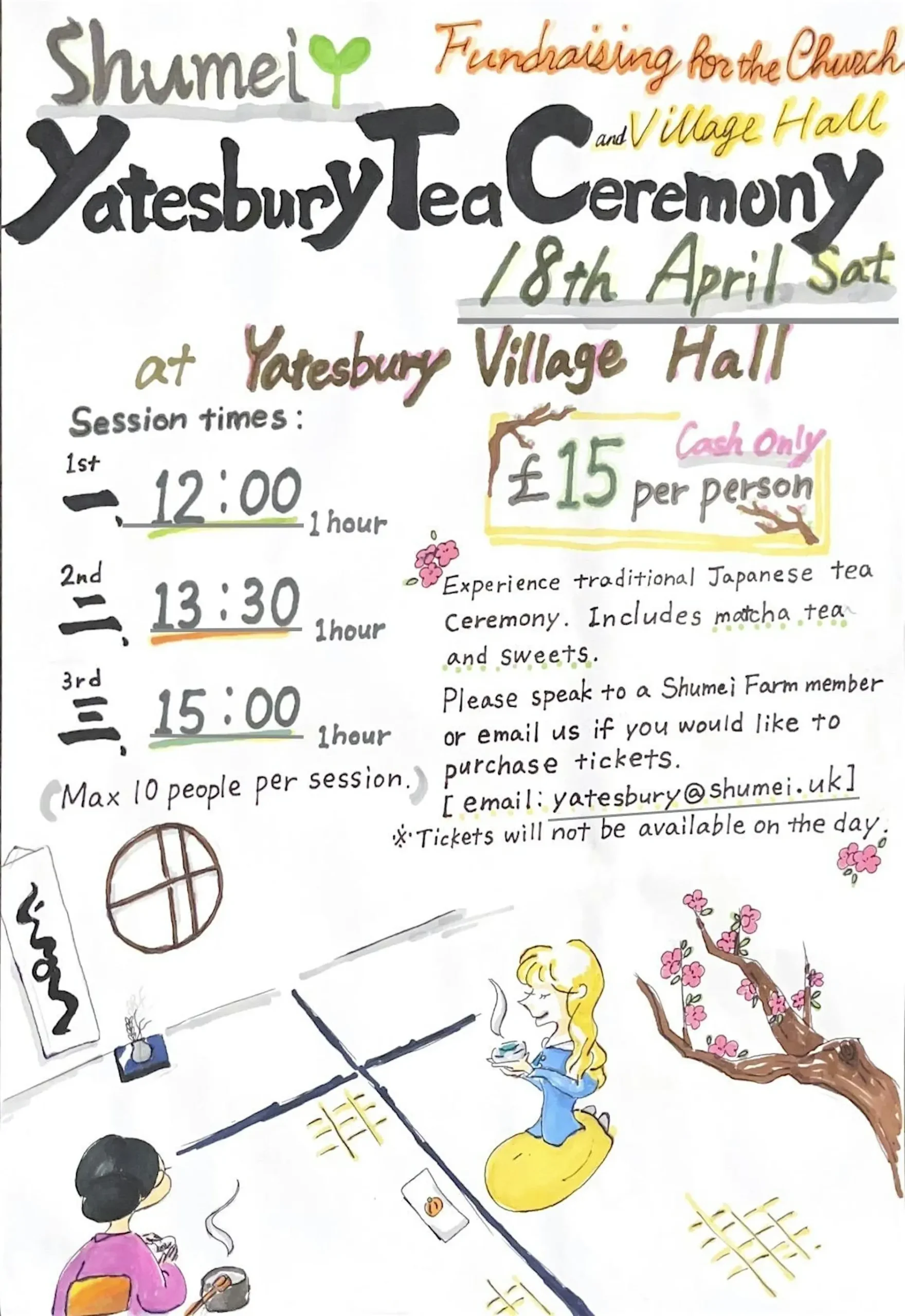 The Shumei community are very kindly holding an afternoon of tea ceremonies in Yatesbury Village Hall, the proceeds from which will go to the Village Hall and the Church. This is a wonderful offer. Do please sign up if you have never experienced a Japanese tea ceremony or would like to support these two good causes.